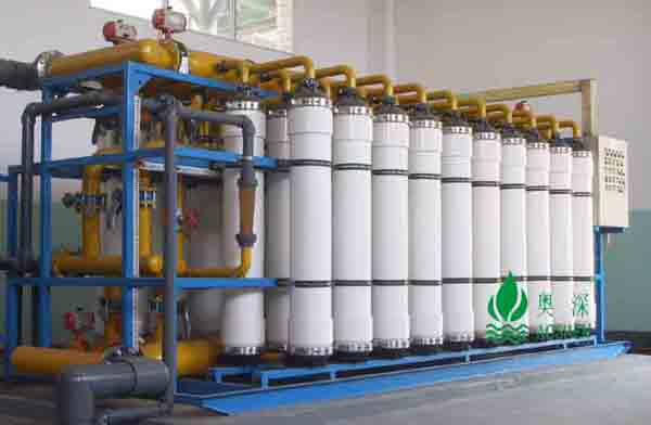 超濾是一種不對稱半透過薄膜,常用材料有醋酸纖維素膜(CA)、聚砜膜(PS)、聚丙烯膜(PAN)等。在一定的壓力下,水在膜表面上流動,水與溶解鹽和其它電解質等微小顆粒能透過超濾膜,而蛋白質、各類酶、細菌、病毒、乳膠、熱源與其它分子量大的顆粒和膠體物質被超濾膜阻擋,從而使水中的部分微粒得到分離、濃縮。超濾膜孔徑為 0.1-0.002µm ,介于反滲透與微孔膜之間。 超濾裝置是根據生產的要求,采用相應截留分子量的超濾膜進行工藝流程設計。超濾分離在常溫、低壓下運行無相態變化,膜不易阻塞,操作極為方便。